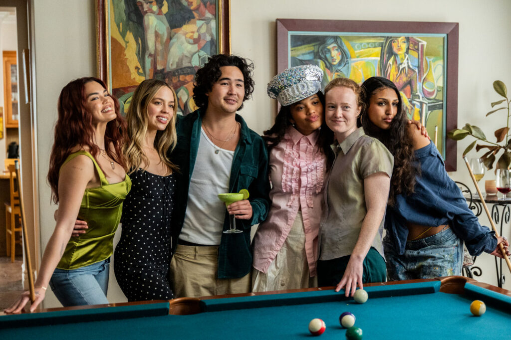 Lauren’s best friend Julie (Missi Pyle) encourages Lauren to reconnect with her passion for acting and to have fun with Sean. The fling continues when fellow student Maria (Kiersey Clemons) invites the class to her and Justine’s (Briana Venskus) wedding—a full weekend event paid for by Maria’s mum Debbie (Enuka Okuma) and her cheerful stepfather Chuck (Jay Lacopo), who contrasts her grumpy dad, Dave (Bradley Whitford). Struggling with her sobriety (keep those diet cokes coming!), Lauren finds herself in a world she otherwise wouldn’t have entered as she tries to keep up with the drunk 25-year-old bridesmaids who instantly flock to Sean, leaving Lauren feeling insecure. While Landecker and Hiraga are excellent in their roles, it’s hard to believe there’s actual chemistry between them, mainly because Hiraga seems to lack sex appeal.