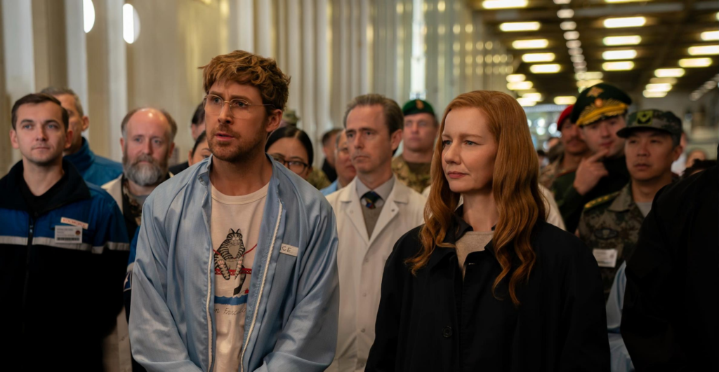 Ryland Grace (Ryan Gosling) wakes up on a spacecraft with no memory of who he is, why he’s there, or how he got there in the first place. It’s a genuine surprise to him when he turns to see a huge window confirming that he is, in fact, in space. Grace slowly remembers that he is a middle school science teacher with a doctorate in molecular biology. Following two timelines, flashbacks reveal that an infrared light from Venus to the Sun—the Petrova Line—is slowly dimming the Sun. This phenomenon is caused by a microorganism called Astrophage which will result in the global cooling of Earth within 30 years. Grace recalls that he is on the Hail Mary on a suicide mission to Tau Ceti, the only unaffected nearby star, to figure out how it’s surviving so he can try and save Earth. To make matters worse, Grace is the sole survivor of three as the pilot and engineer (Milana Vayntrub and Ken Leung) never woke up from the comas they were placed in for space travel.