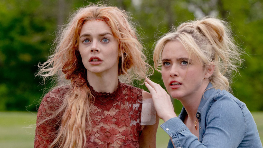 Ready or Not 2 feels visually and tonally consistent with its predecessor, thanks to the return of directors Matt Bettinelli-Olpin and Tyler Gillett, screenwriters Guy Busick and Christopher Murphy, and cinematographer Brett Jutkiewicz. The cinematography is fantastic with luxurious interiors, lush green lawns, and colourful flowers, which lends itself to the atmospheric colour grading and real sets such as Toronto’s Rosedale Golf Club and Fairmont Royal York Hotel, each reflecting the wealth and power of the elite families. The directing is dynamic and captivating, as is the editing from Jay Prychidny. The film’s opening is arresting as the camera never leaves Grace—even when she passes out and is transported into the ambulance. We hear the paramedics, but we never see them. It keeps us with Grace in the aftermath of the trauma she has just been through and the impact it has on her body, which creates a powerful emotional intimacy with the character.